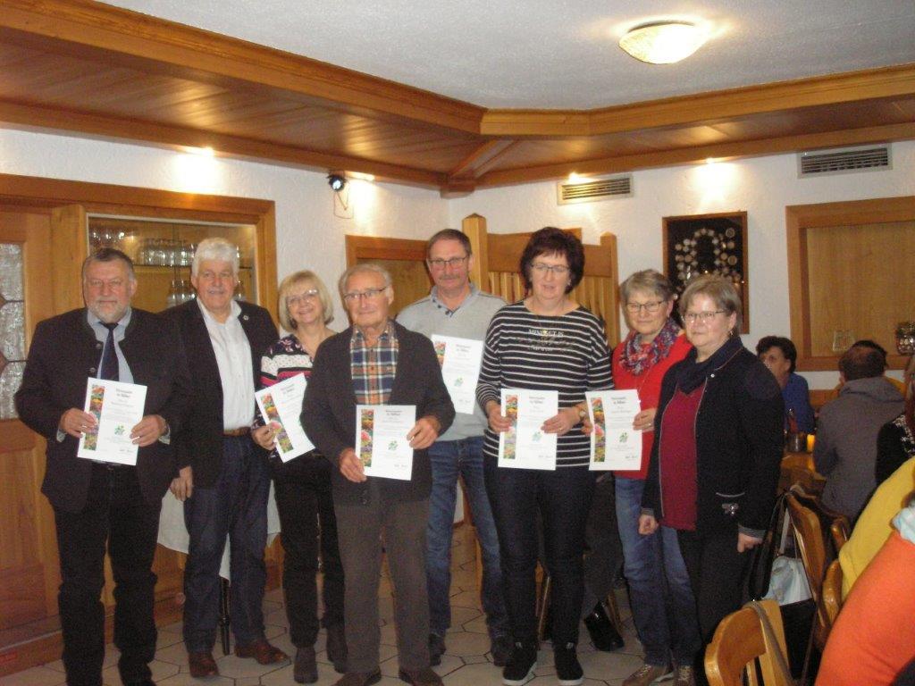 Anschließend wurden die Ehrungen von Mitgliedern vorgenommen: Bronze 7x für 15 Jahre und Silber 17x für 25 Jahre.